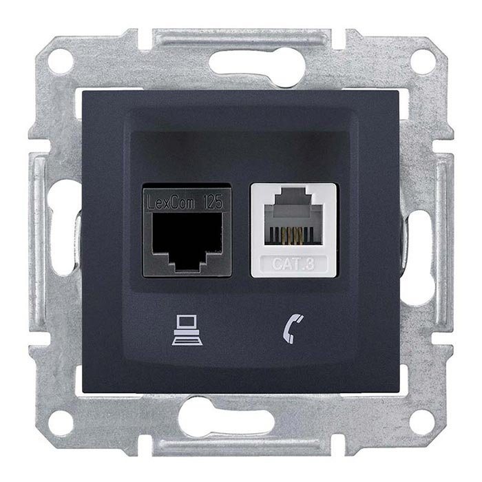 Розетка телефононная + компьютерная графит «Sedna» — Schneider Electric SDN5100170