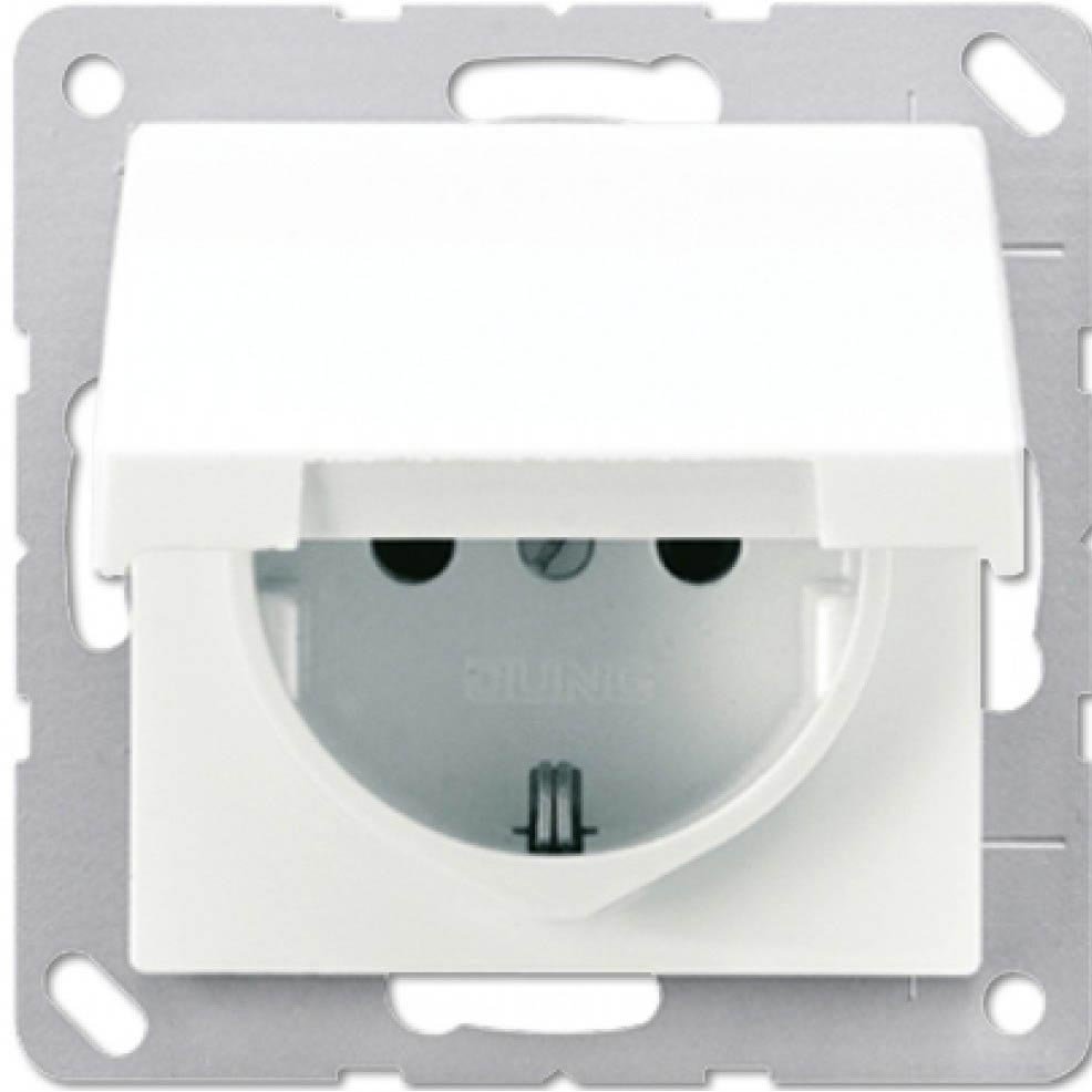 Розетка с з/к с крышкой IP44 Jung AS520BFKLWW белый