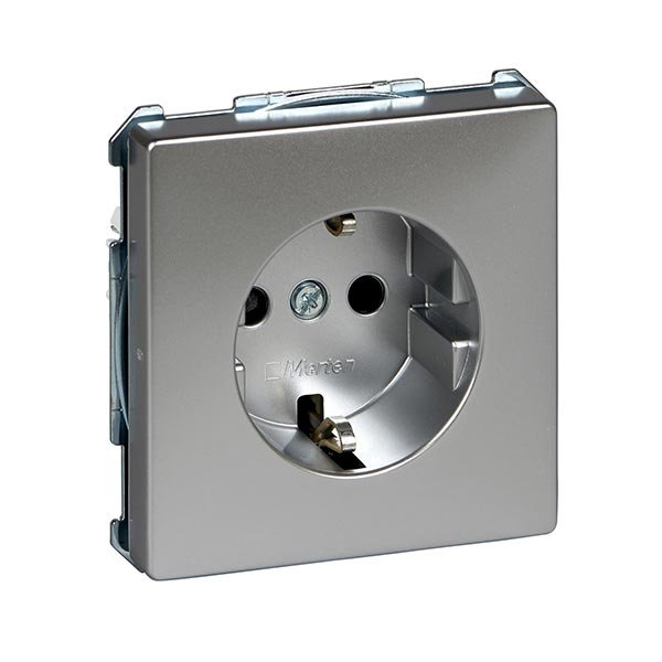Merten SD Алюминий Розетка 1-ая с заземляющим контактом и защитными шторками 237760