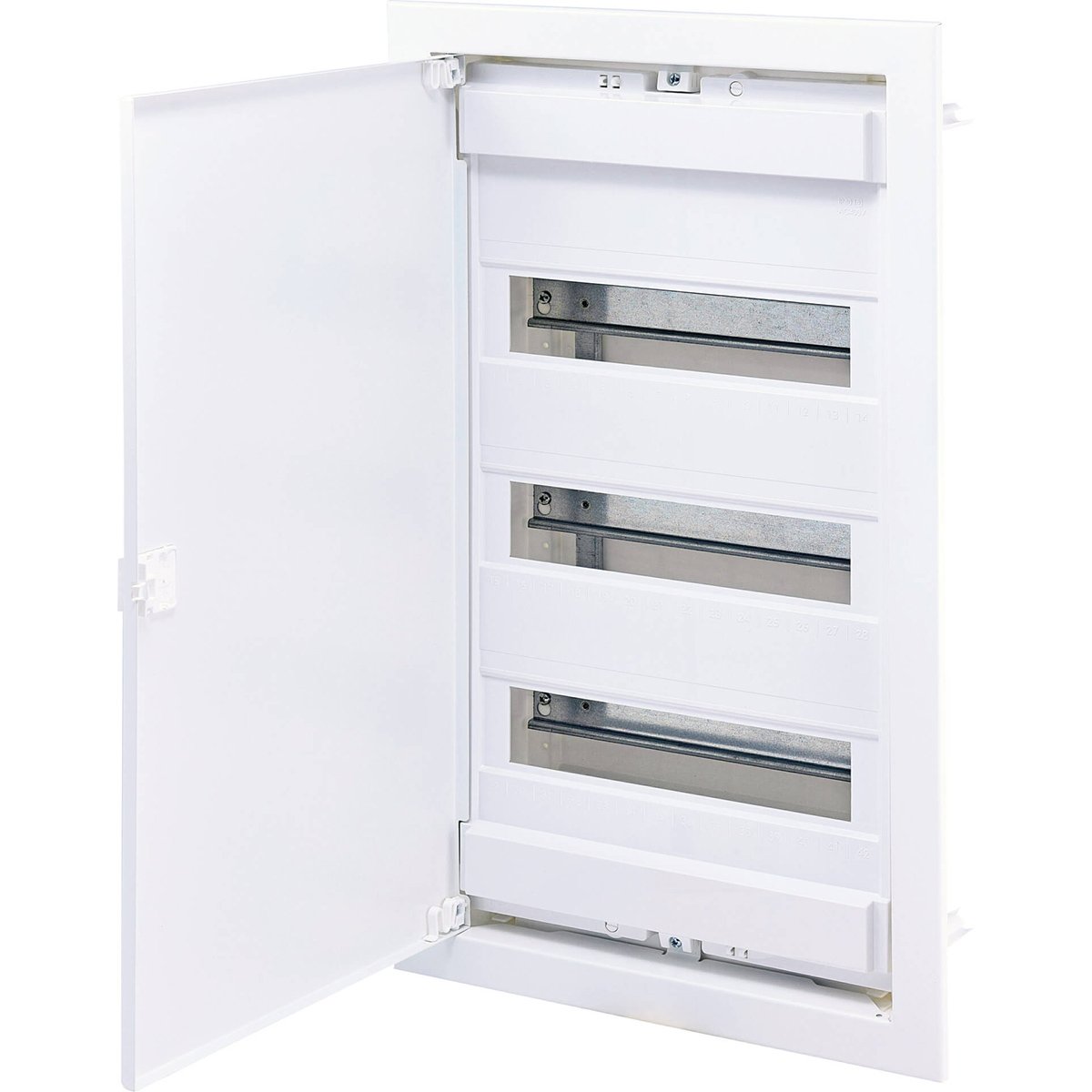 Распределительный щит ECG42 ETI поставляется с белой металлической дверцей.