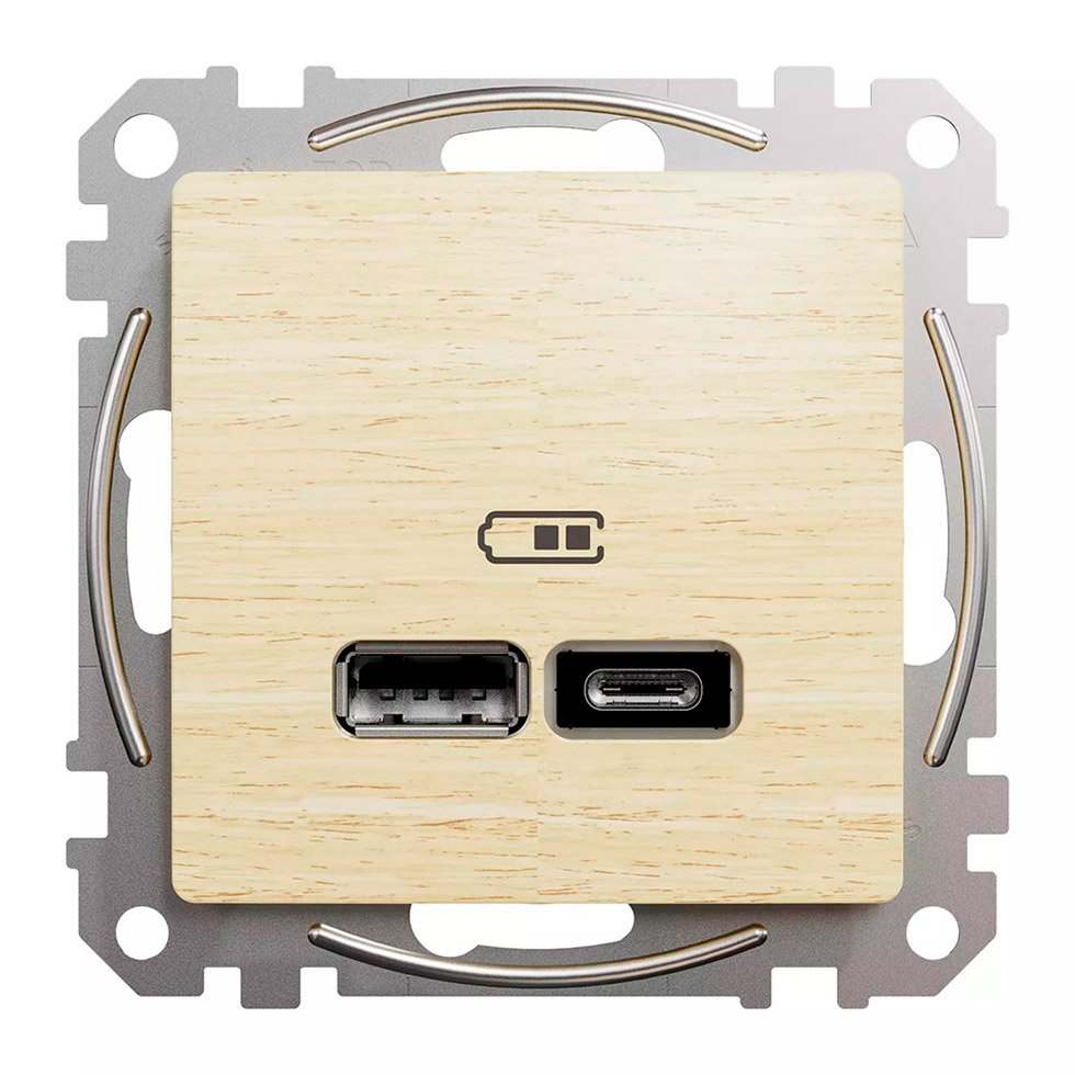 USB розетка тип A+C 2,4A Schneider Electric «Sedna Elements» SDD180402, цвет - береза