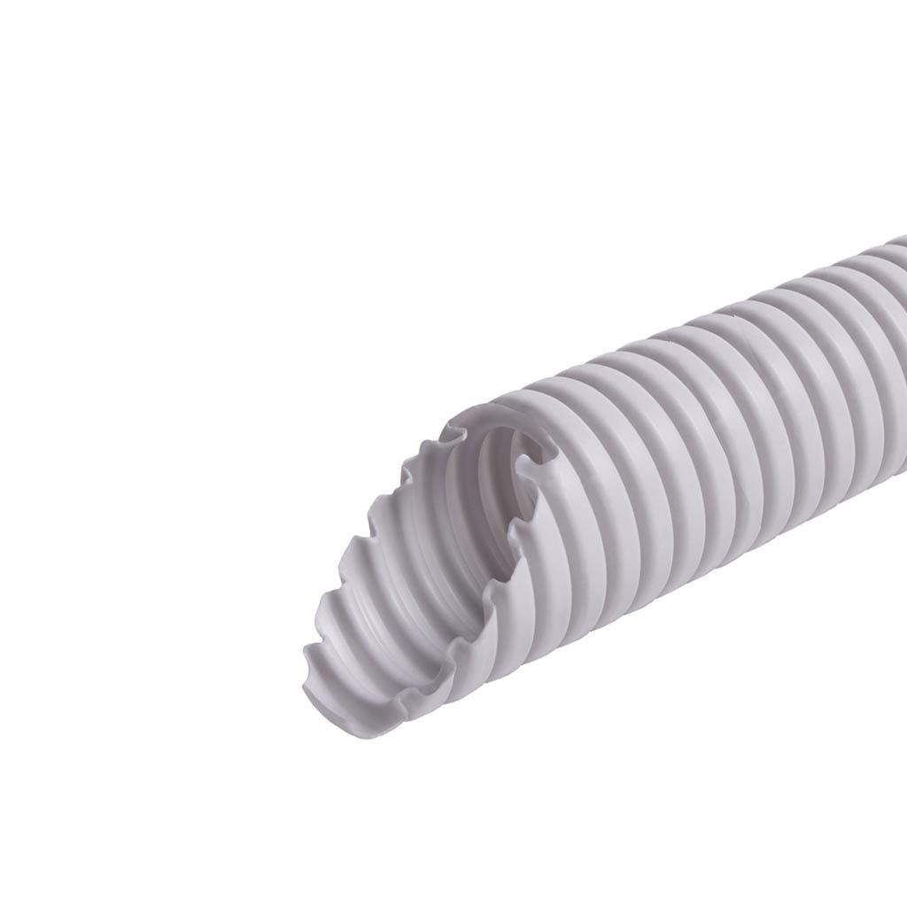 Труба гофрована гнучка з протяжкою, світло-сіра, 50 м в бухті.