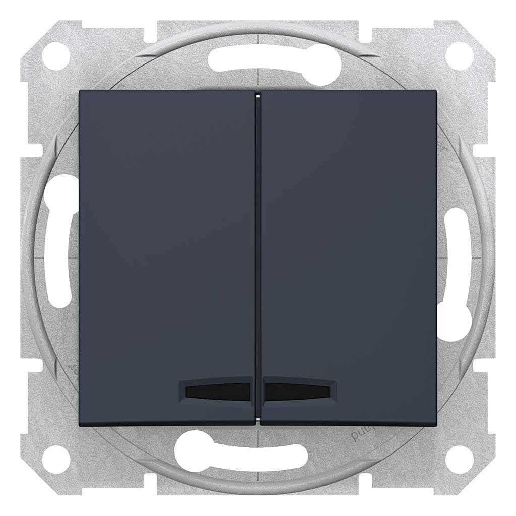 Двоклавішний вимикач з синім підсвічуванням клавіш для внутрішньої установки. Для увімкнення / відключення двома групами світла.Характеристики: