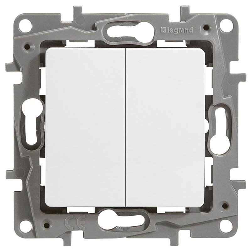 – Механізм вимикача 2-клавішного з лампою підсвічування в комплекті. Підключається на два незалежних напрямки.