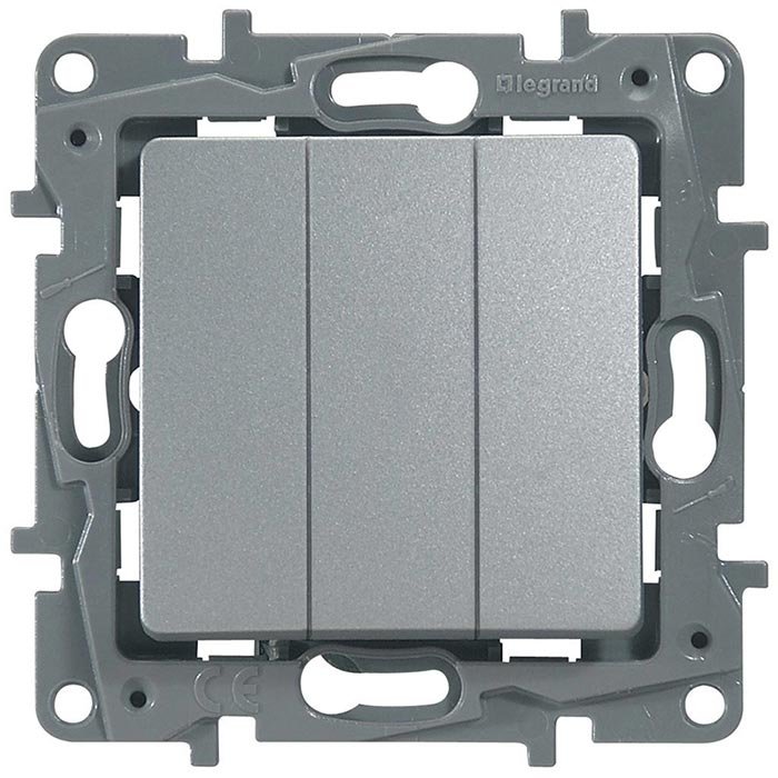 Вимикач 3-клавішний, Legrand Etika 672413, «алюміній»