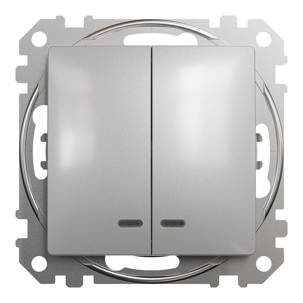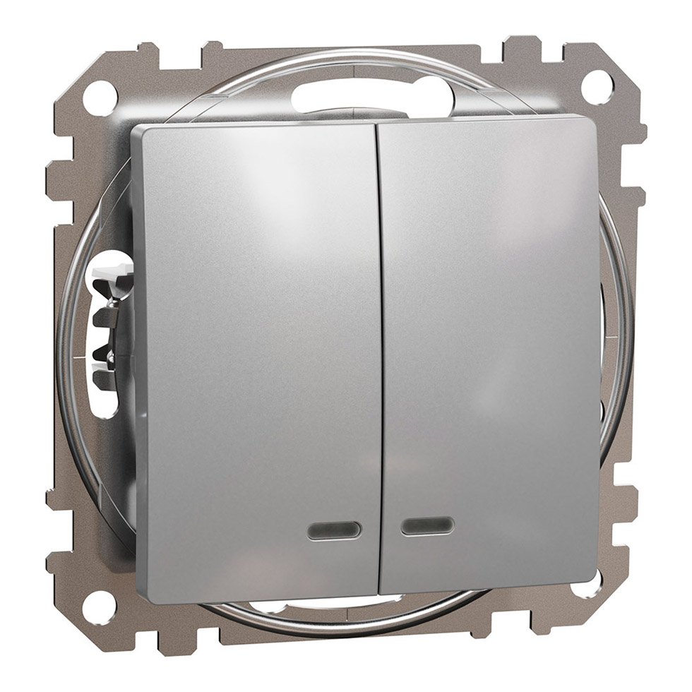 Вимикач з підсвічуванням 2-клавішний Schneider Electric «Sedna Design» SDD113105L (колір - алюміній)