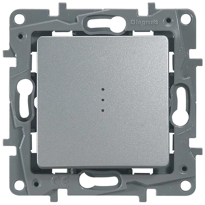 Вимикач / перемикач 1-клавішний з підсвіткою Legrand Etika 672415, «алюміній металік»