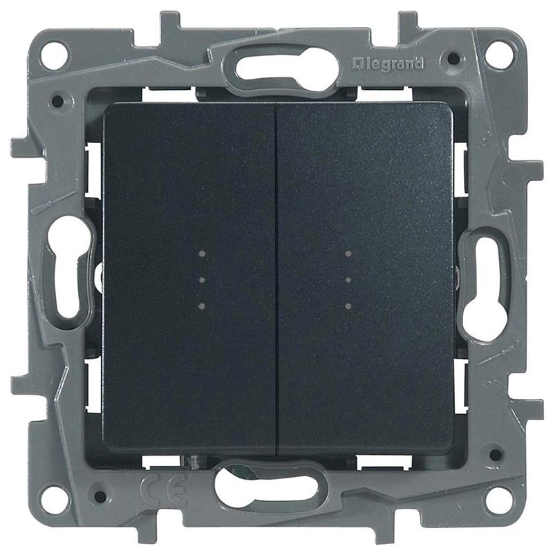 Вимикач / перемикач 2-клавішний з можливістю підсвічування Legrand Etika 672616, «антрацит»